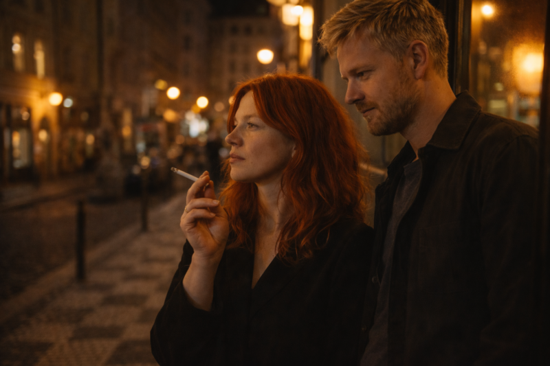 Stáli před hospodou na dlažbě, která ještě držela teplo z odpoledne. Praha v létě voní jinak. Asfaltem, pivem, lípy doznívají. Radek si zapálil, a zapálil také Lauře. Chvíli mlčeli tím způsobem, kdy ticho není nepohodlné, jen plné.
